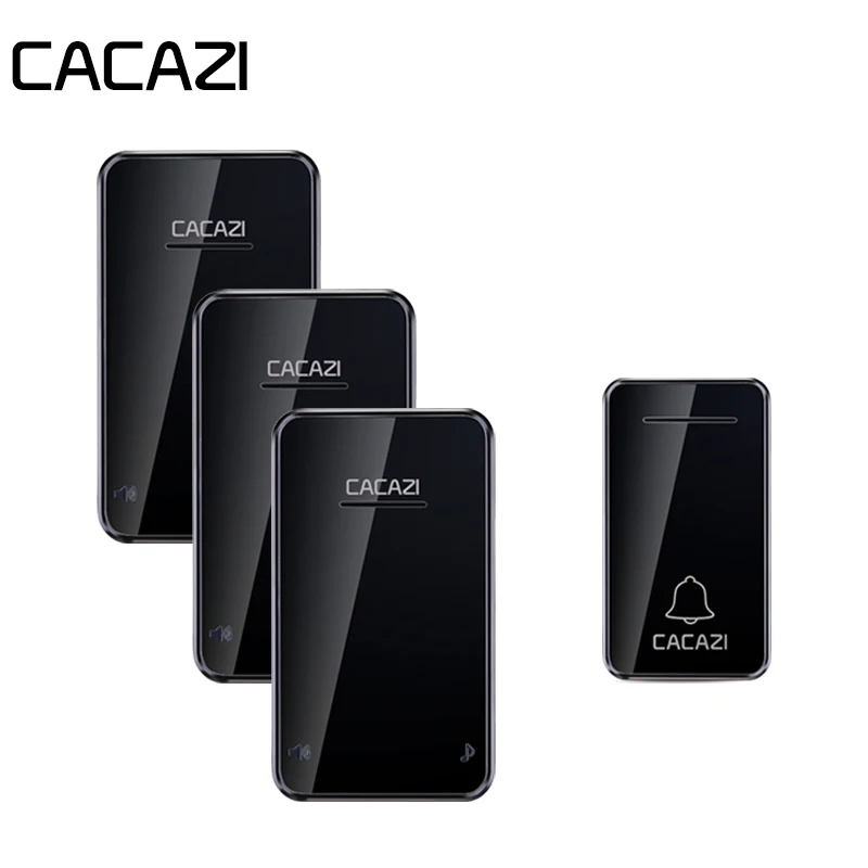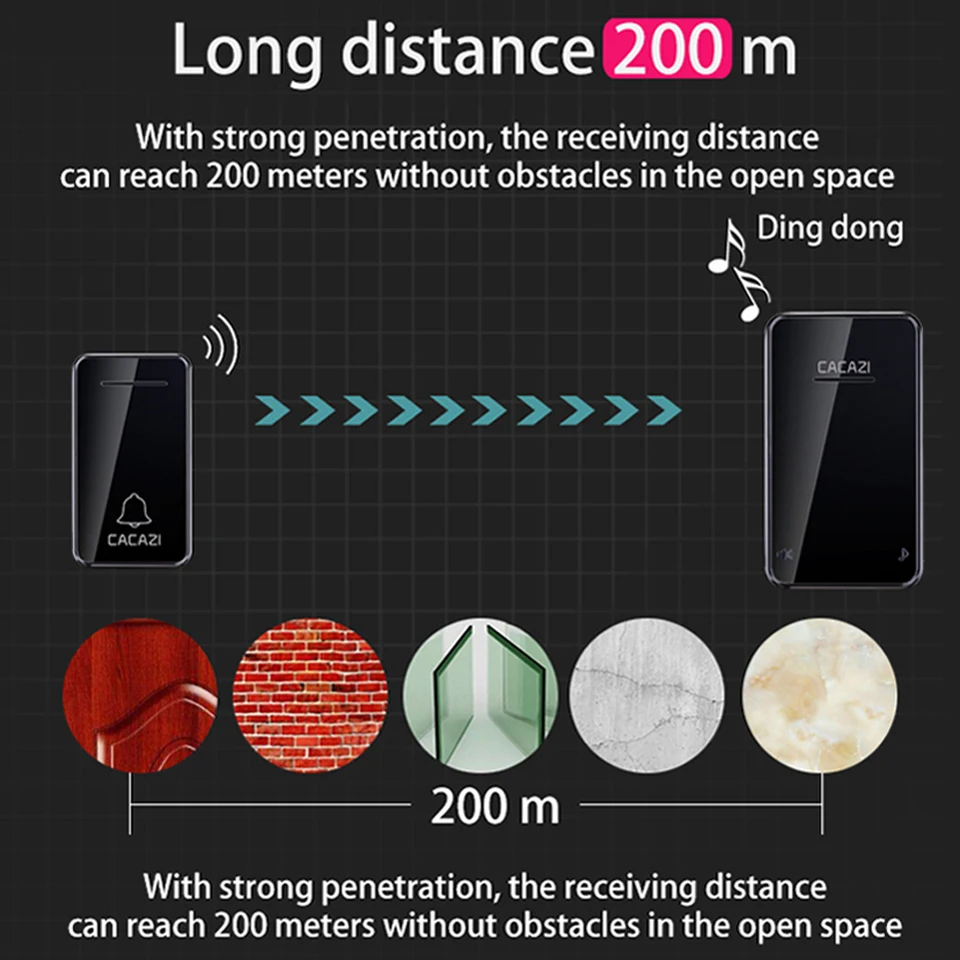 Автономный Домашний Беспроводной дверной звонок CACAZI, водостойкий, без батареи, 200 м, дистанционный светодиодный светильник, звонок с европейской вилкой, 6 громкости, 48 звонков