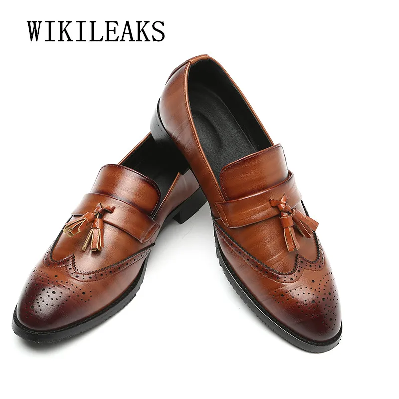 Мужские кожаные лоферы, Классические броги с кисточками, деловые ту...