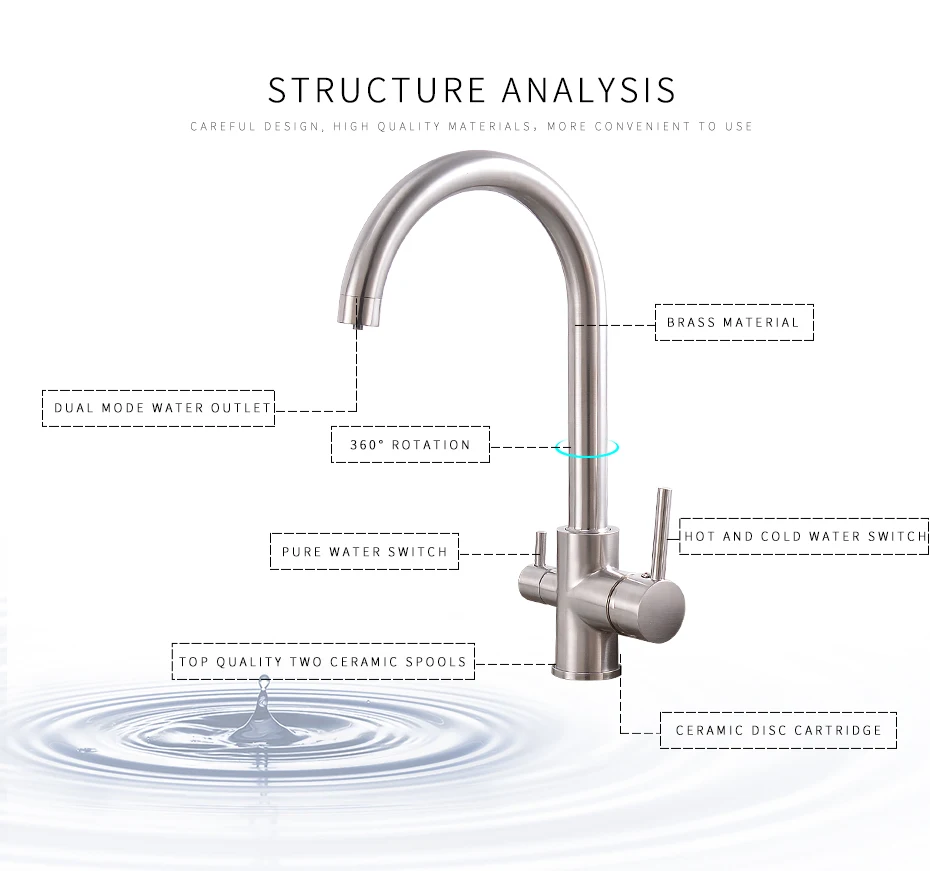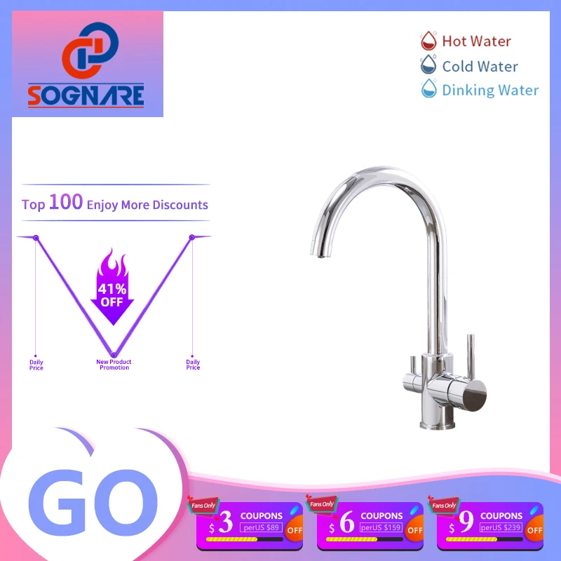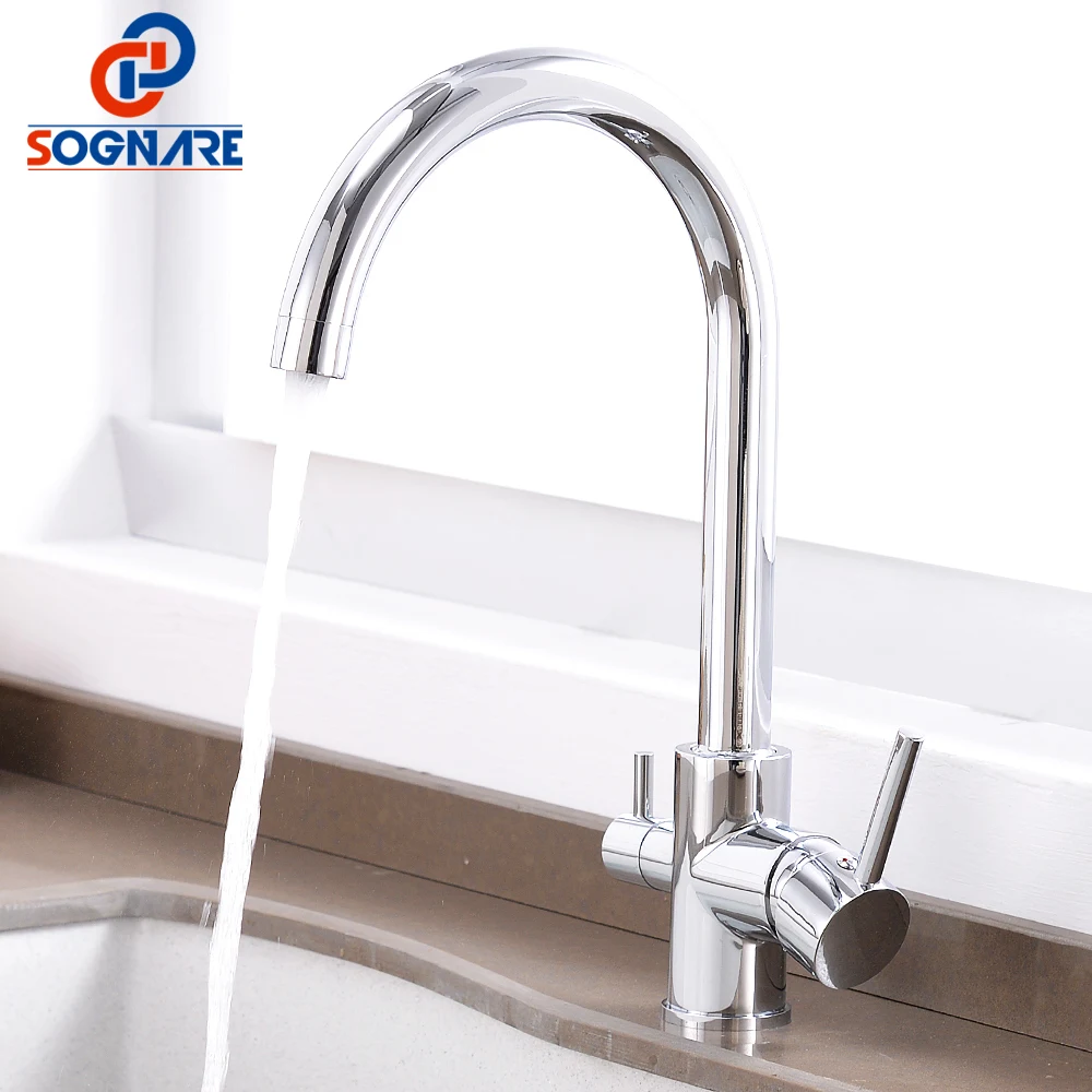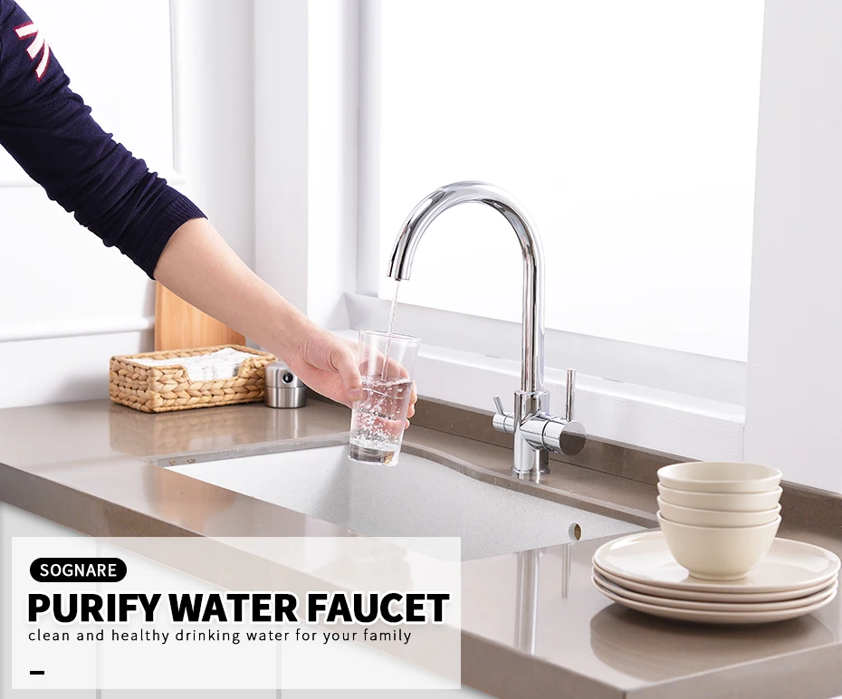 Кухонный смеситель с краном для фильтрованной воды, вращение на 360 градусов, 3-ходовой кран для питьевой воды, хромированные латунные смесители для раковины, кухонный смеситель, краны
