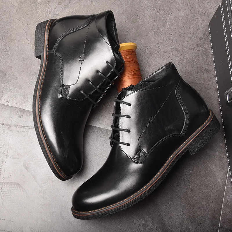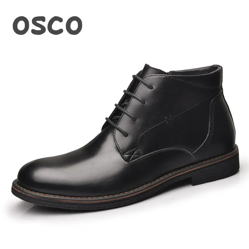Мужские деловые повседневные ботинки OSCO, Черные ботильоны из натуральной кожи, модная обувь для зимы, 2019