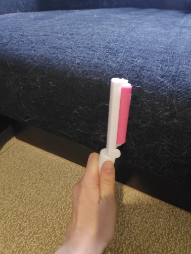Хорошая вещь. Очень липкая. Кошачью шерсть собирает хорошо. Только очень быстро забивается, и пока не помоешь - бесполезна. С одной чистки - малая площадь только... Маленькая. В сумке полезно иметь.