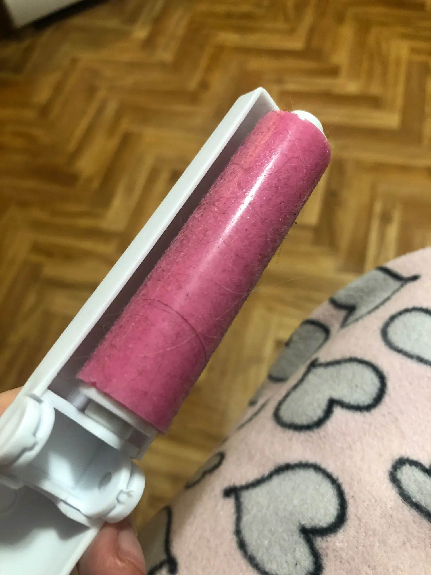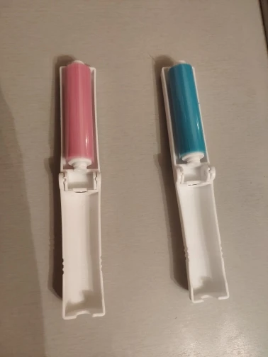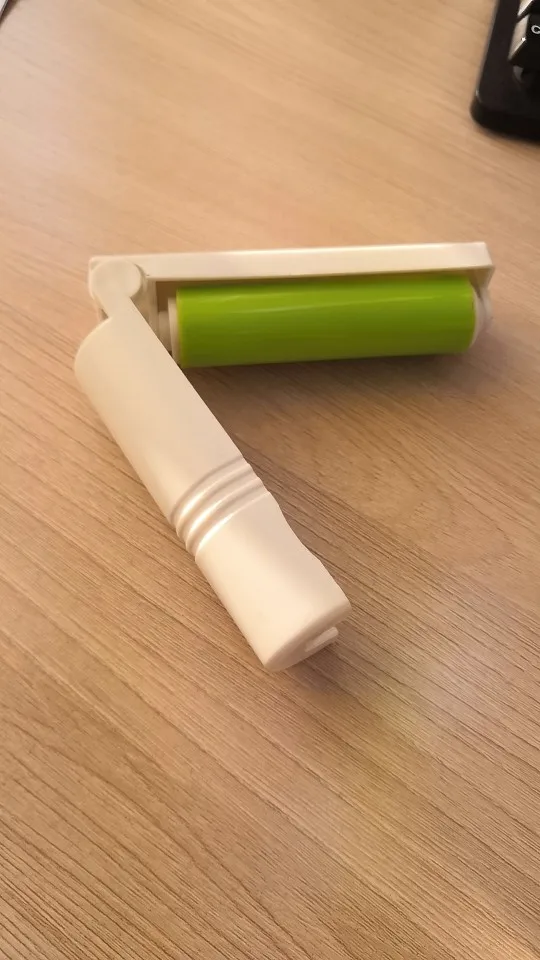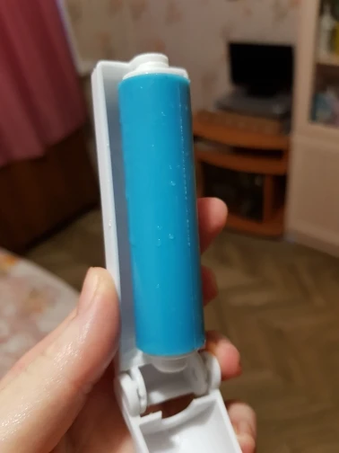 Такие ролики очень хороши чистят одежду от кошачей шерсти. Предыдущий такой же продержался два года ежедневного использования. Этот небольшой, удобно брать с собой. Липкий, хорошо собирает шерсть. Моется под струёй воды.