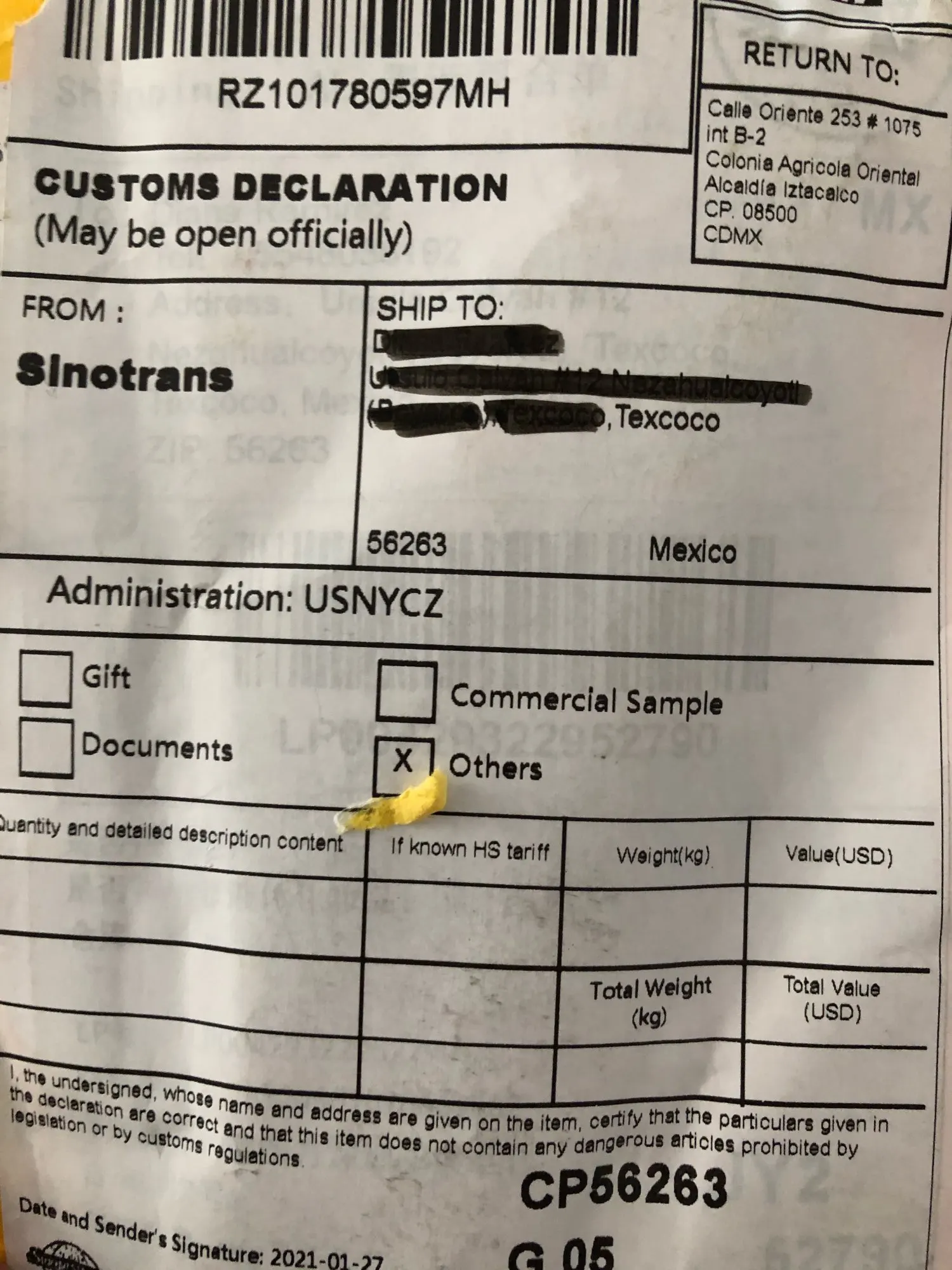 Страна: NG Доставка: Cainiao Super Economy Global 09.10.2020