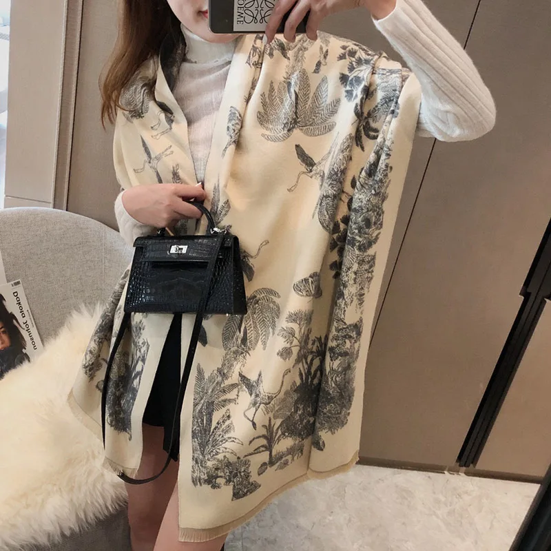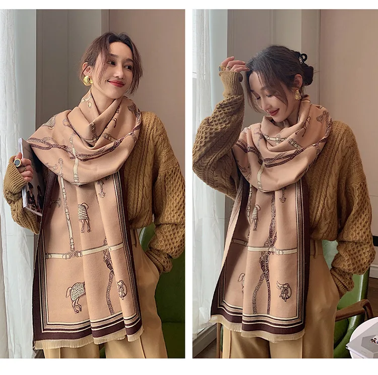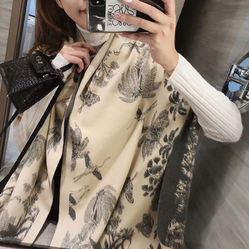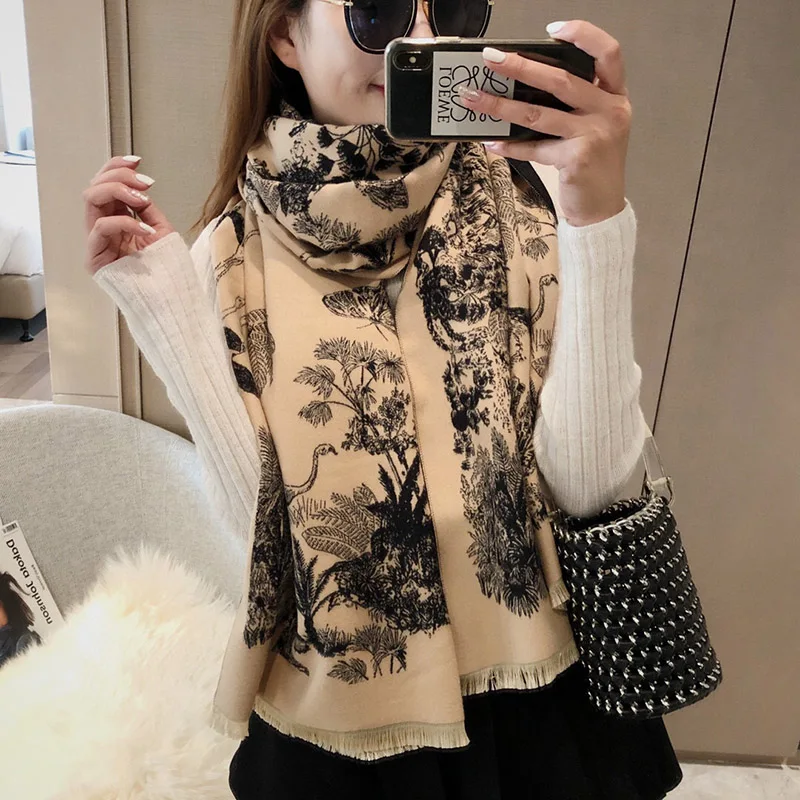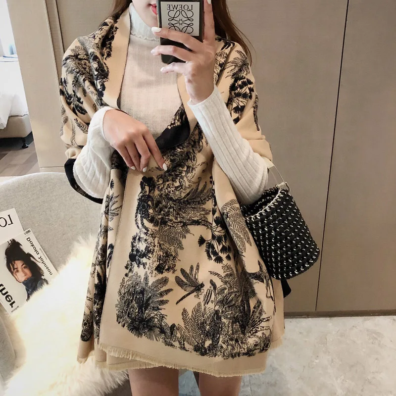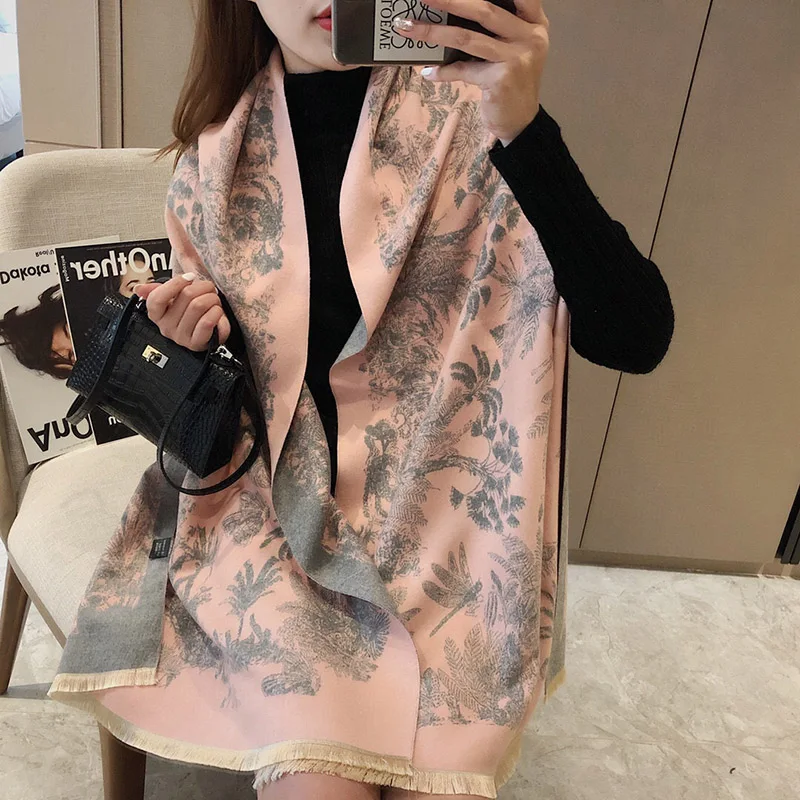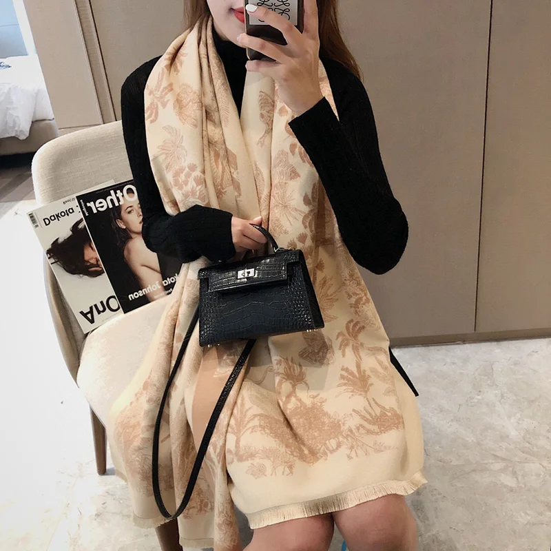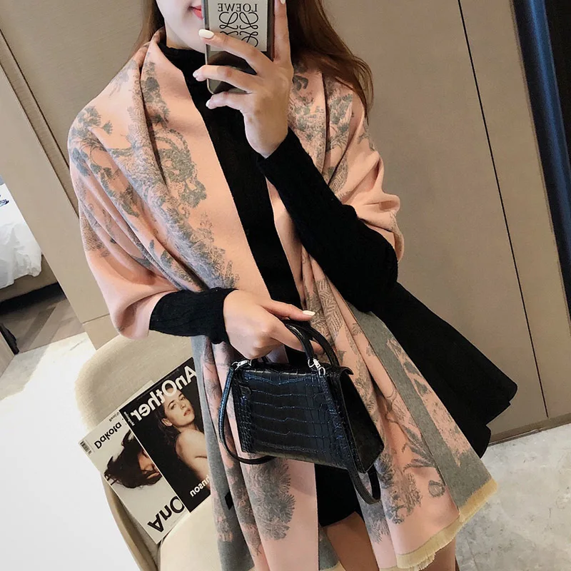 Новые женские зимние кашемировые шарфы, Женская шаль высокого качества с цветочным рисунком камелии, плотная теплая Пашмина, женские шарфы