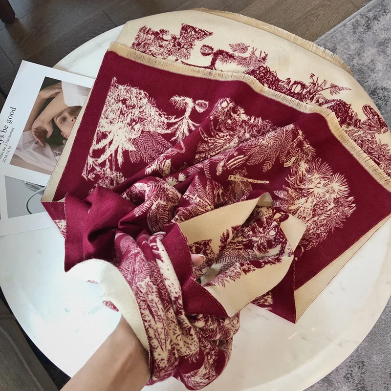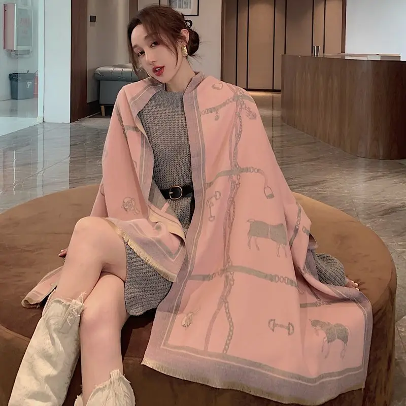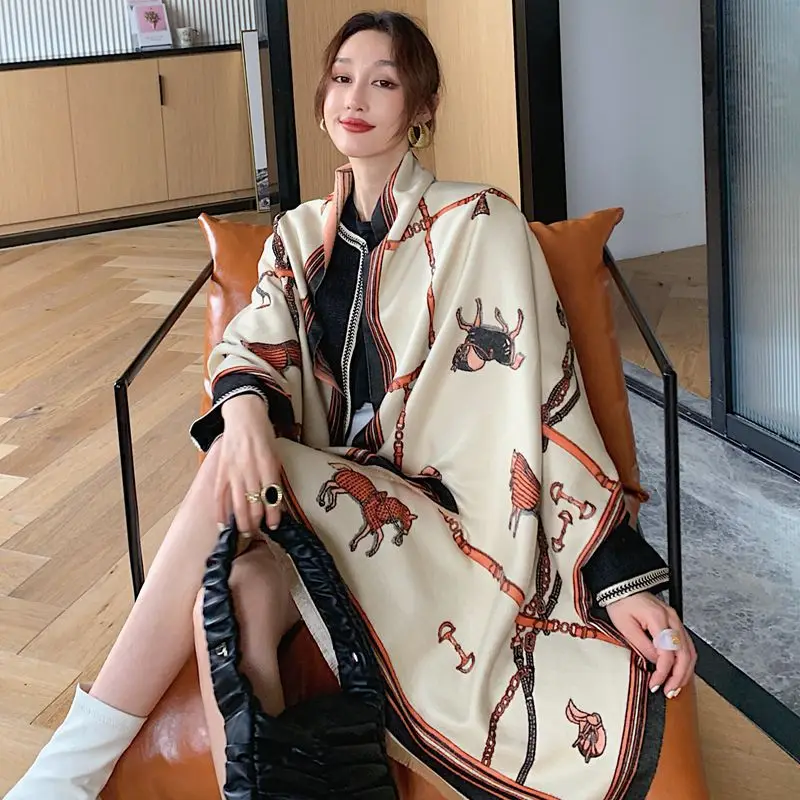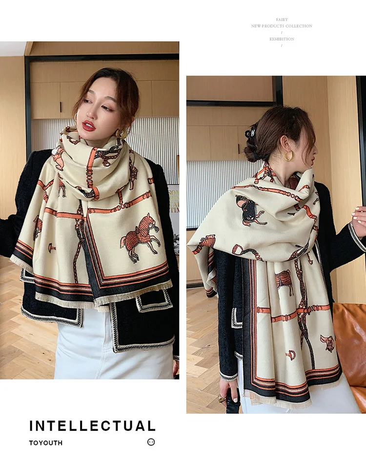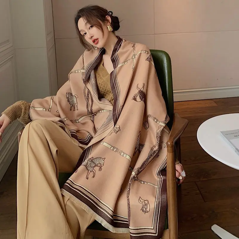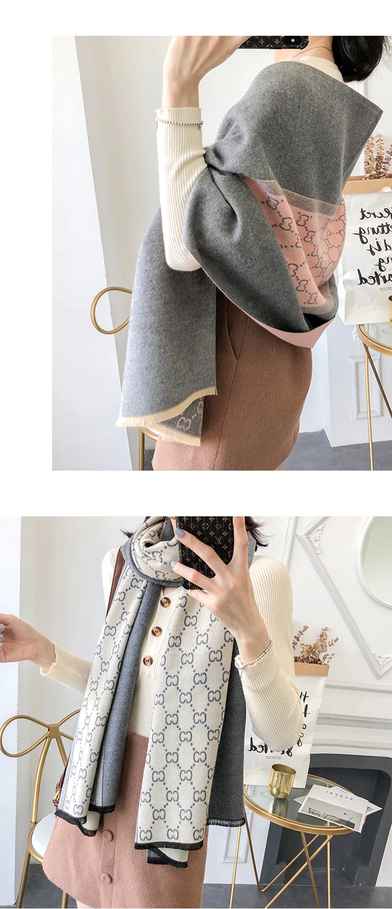 Новые женские зимние кашемировые шарфы, Женская шаль высокого качества с цветочным рисунком камелии, плотная теплая Пашмина, женские шарфы