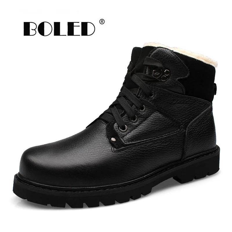 Размера плюс мужские ботинки из натуральной кожи, теплые меховые и плюшевые зимние ботинки, уличные мужские ботильоны, зимняя обувь