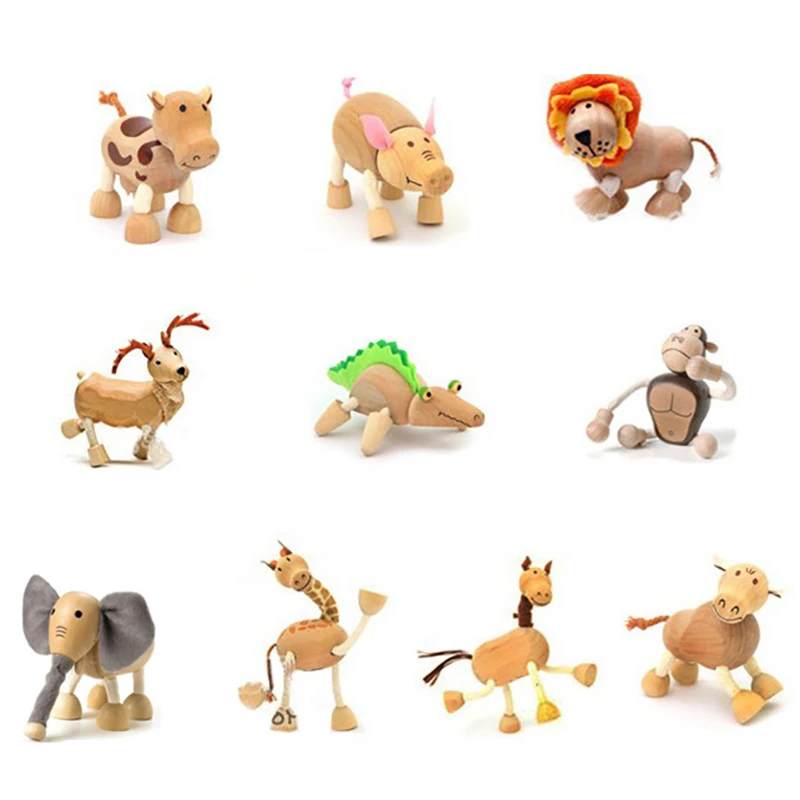 Деревянные милые куклы-животные, маленькие модели животных, Детские обучающие игрушки, куколки статуэтки животных, экологически чистые