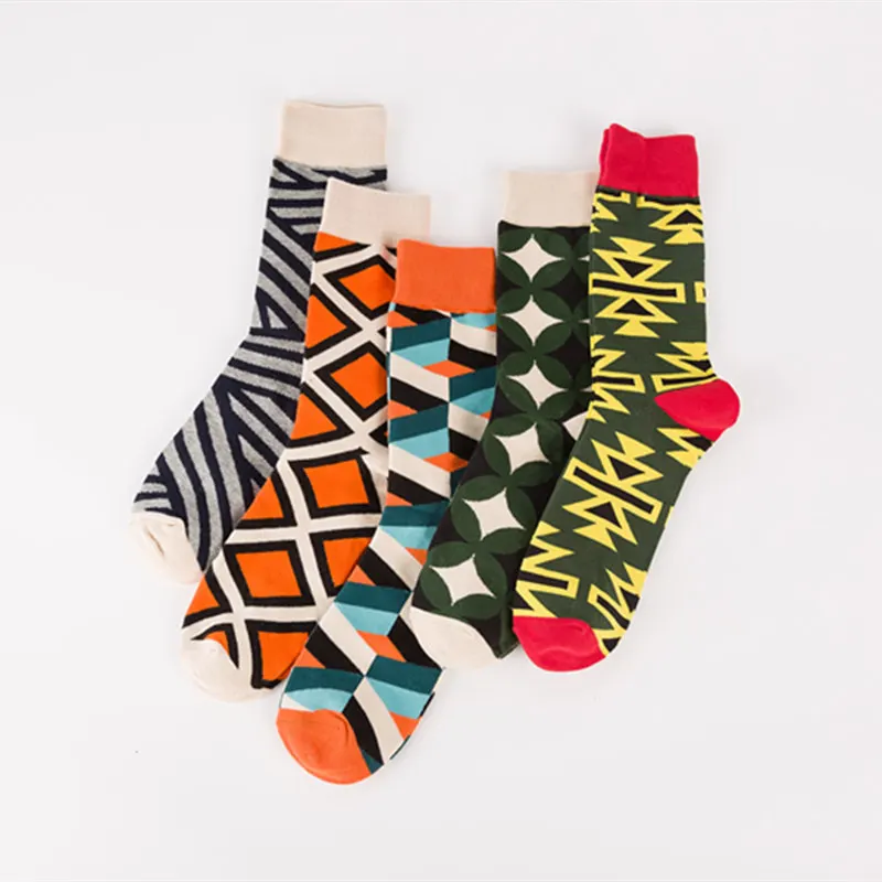 Цветные хлопковые счастливые мужские носки в британском стиле повседневные чесаные хлопчатобумажные забавные носки Модные трендовые уличные Молодежные носки для скейтборда