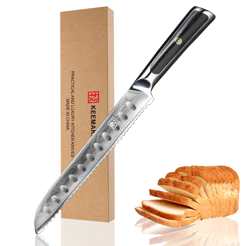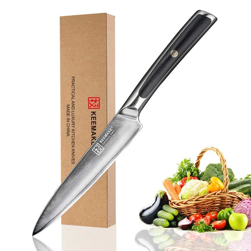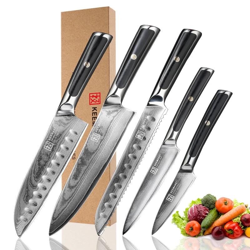 Набор поварских ножей KEEMAKE премиум класса, Дамаск, сантоку, для хлеба, набор ножей для очистки овощей, японское лезвие из стали VG10, Ручка G10, кухонные ножи