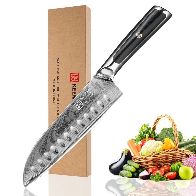 KEEMAKE Премиум шеф-нож Дамаск Santoku нарезка Универсальный Набор ножей для очистки овощей японский VG10 стальное лезвие G10 Ручка кухонные ножи