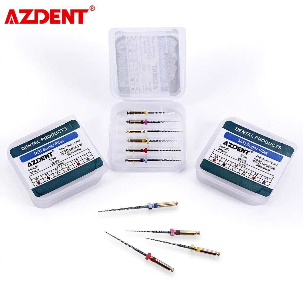6 шт. AZDENT Dental SX-F3 Engine Use NiTi Super Rotary File Machine, конусные стоматологические инструменты, никель титановый металл, корневой канал