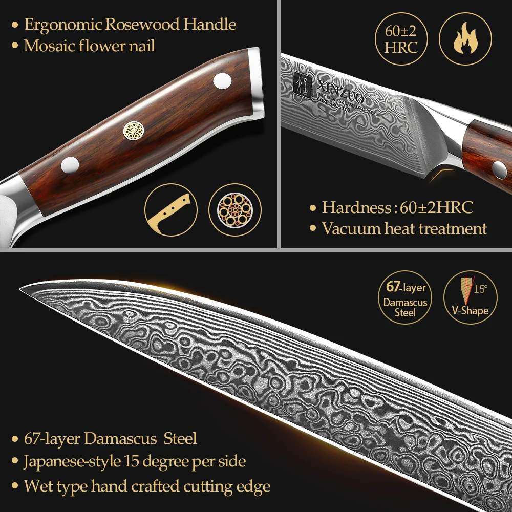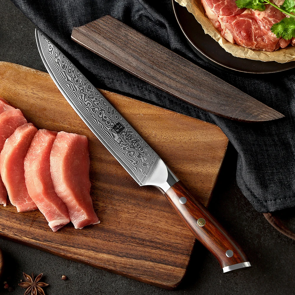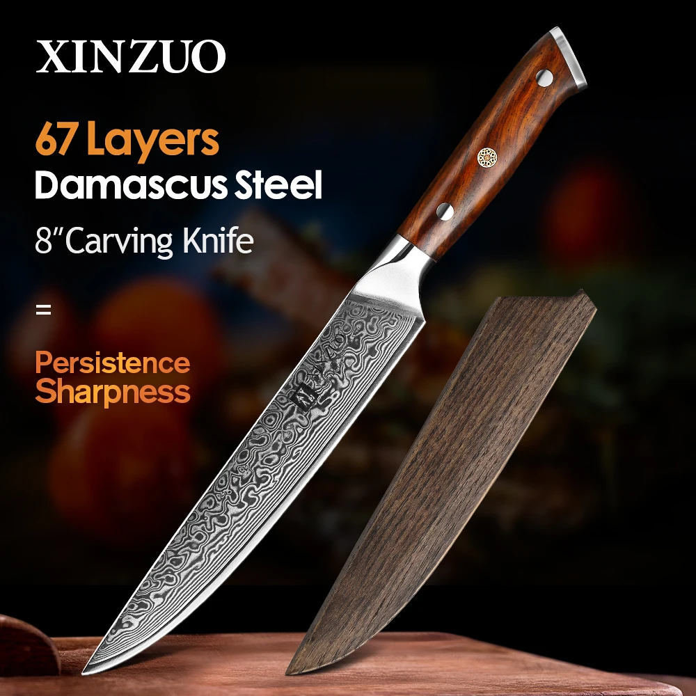 XINZUO 8 "Кливер нож резьба vg10 стальной сердечник Дамасская Палисандр Ручка Ультра Острый нарезки мяса кухонный нож с подарочной коробкой