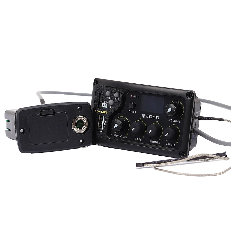 JOYO EQ-MP3, эквалайзер для акустической гитары, 3-полосный эквалайзер, звукосниматель с MP3 и тюнером, ЖК-дисплей, Регулировка низких частот, средних высоких частот