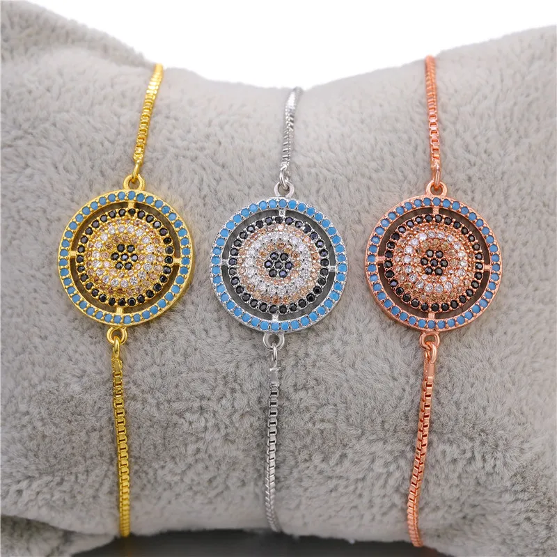 Браслет Juya Турецкий Дурной глаз для женщин, циркониевые шармы с греческими глазами, регулируемые цепочки, браслет товары для бижутерии ручной работы