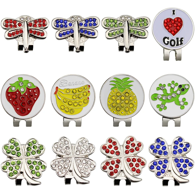 Блестящая Алмазная отметка для мяча для гольфа, плюс магнит, сплав, шляпа для гольфа, зажим для гольфа, много цветов, принадлежности для гольфа, гольф-маркер для любителей гольфа