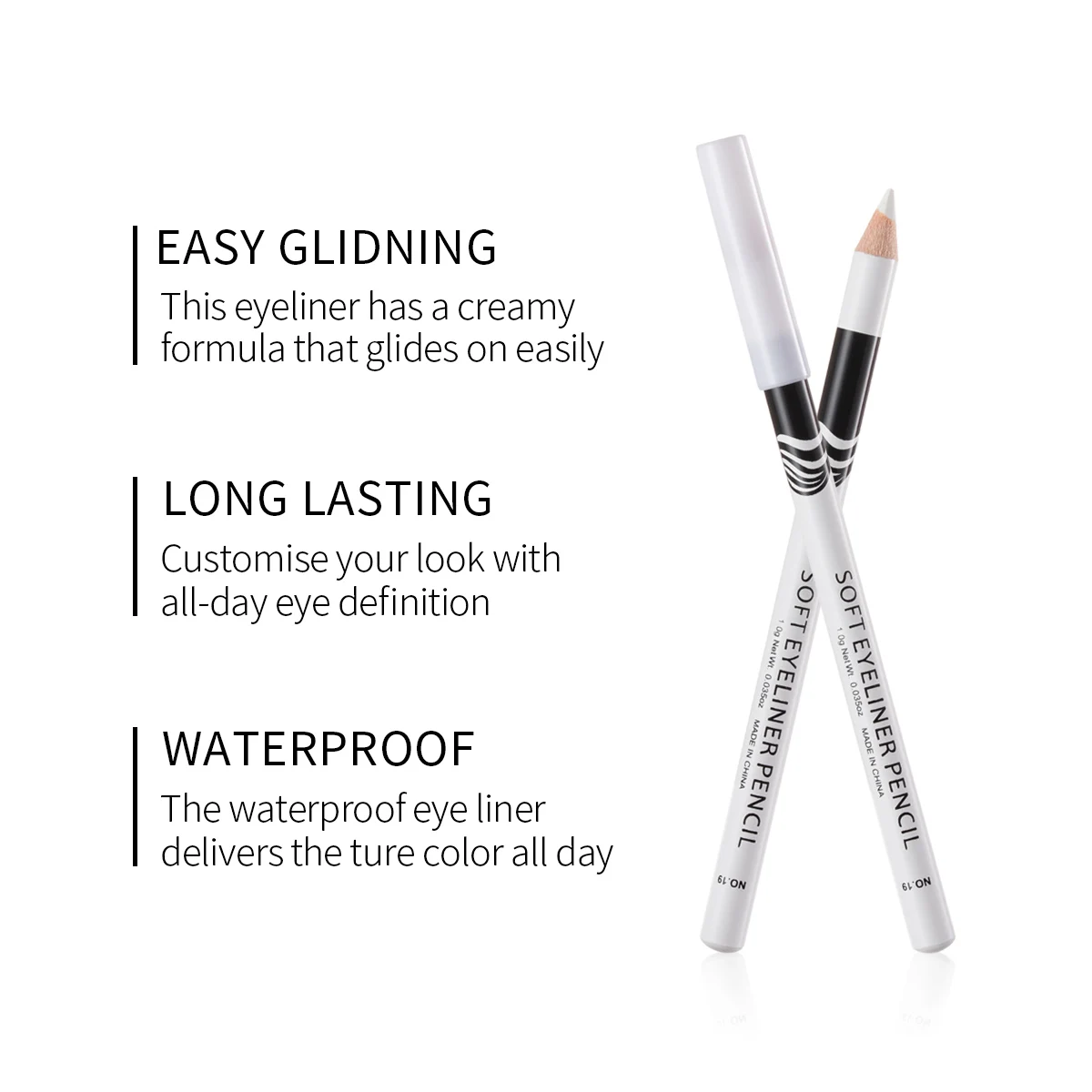 Карандаш-подводка для контура глаз женский, водостойкий, белый, 1 шт.