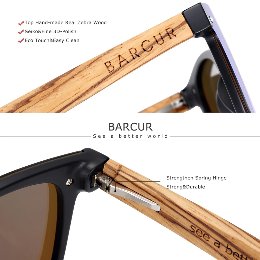 BARCUR Новая мода оттенки солнечные очки из дерева зебрано мужские UV400 защита солнцезащитные очки деревянные женские очки