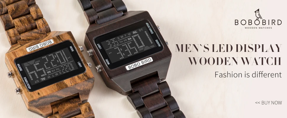 Мужские часы BOBO BIRD, светодиодный деревянные мужские часы, цифро...