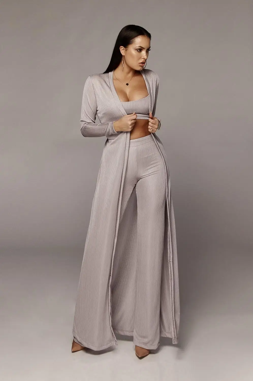 Женский комплект из 3 предметов, кардиган на шнуровке с длинным рукавом, свободные широкие брюки, топ, комплект из 3 предметов, женские костюмы
