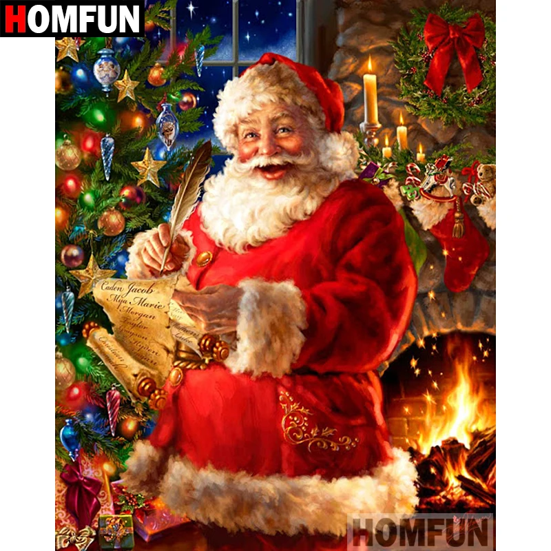 Алмазная 5D картина HOMFUN сделай сам, полноразмернаякруглая вышивка крестиком Санта Клаус, подарок для домашнего декора, A03782