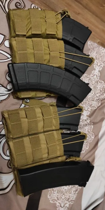 Подсумок хороший, АКМ и АК-74 магазины влезают. Плотная ткань, толстая резинка. Брал для павера 8х18650 - не влез, если на 5 банок павер то влезет. Доставка 4 недели. Спасибо продавцу.