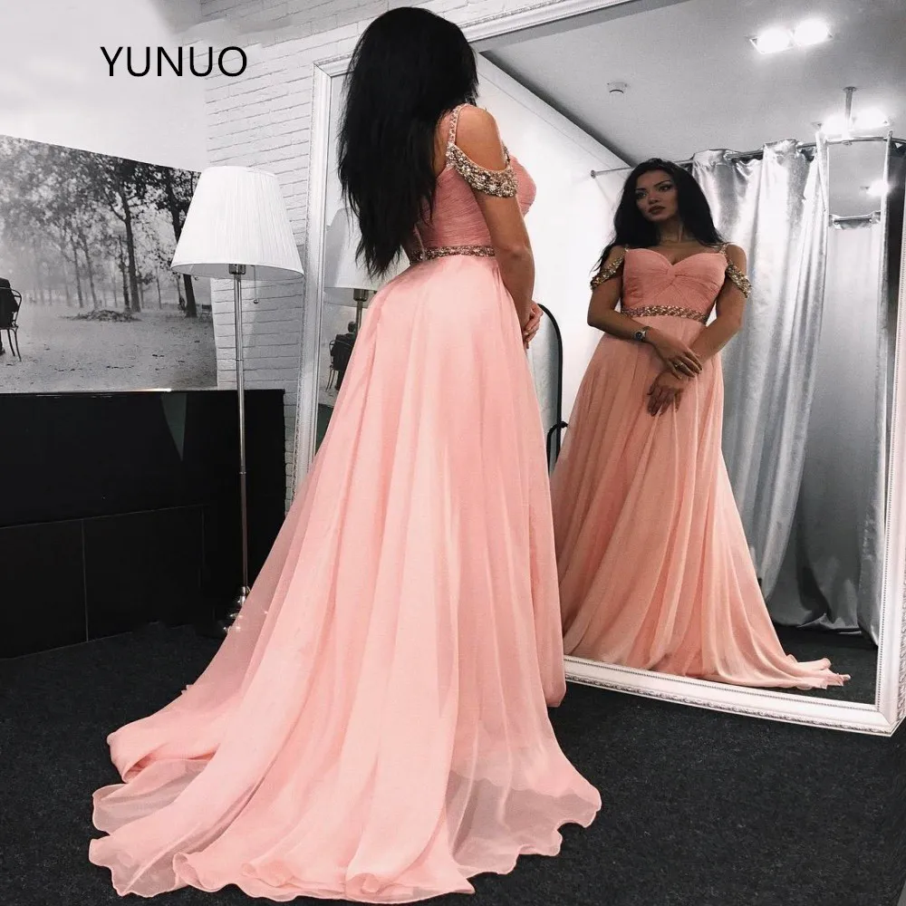 Длинные вечерние платья 2022, розовые платья с разрезом, кристаллами и бисером, трапециевидные платья для выпускного вечера