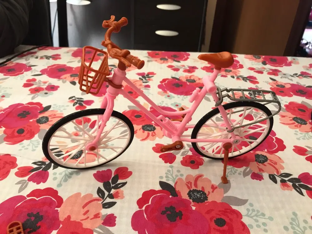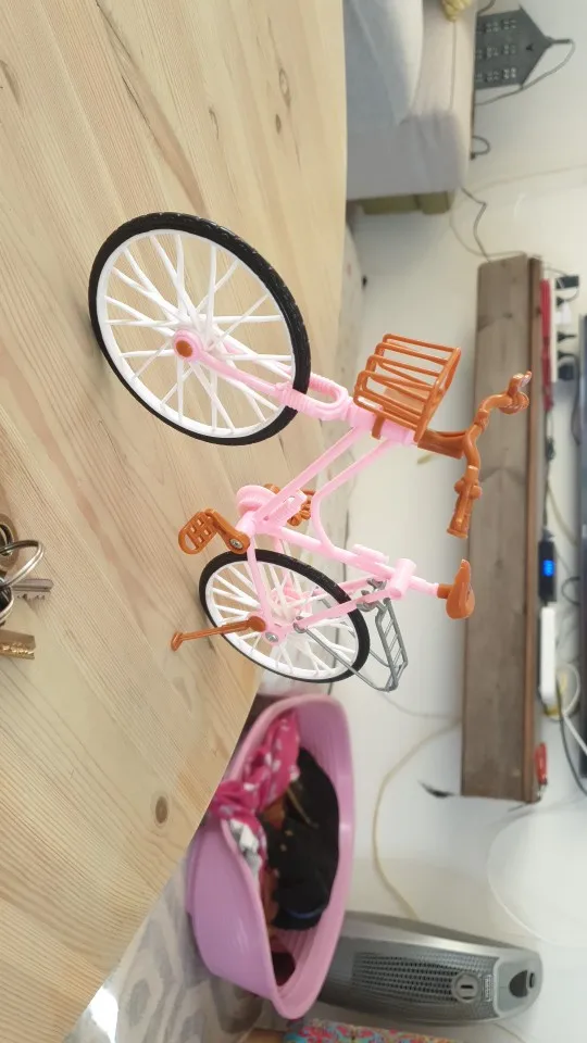 Модный красивый велосипед, модный съемный розовый велосипед с коричневой пластиковой корзиной для кукол, аксессуары