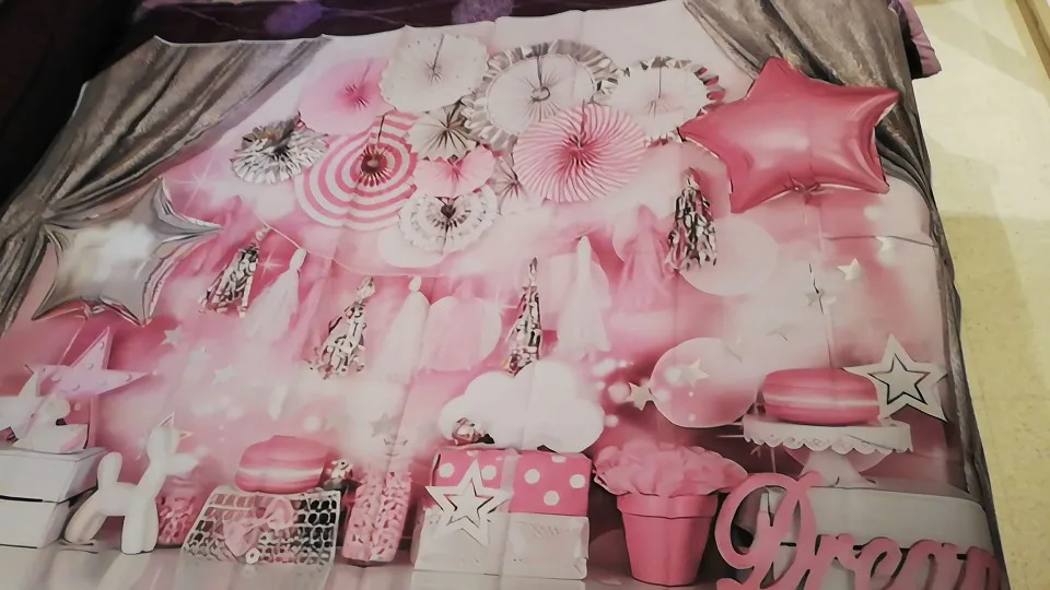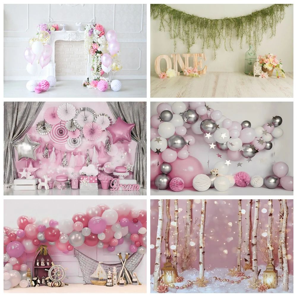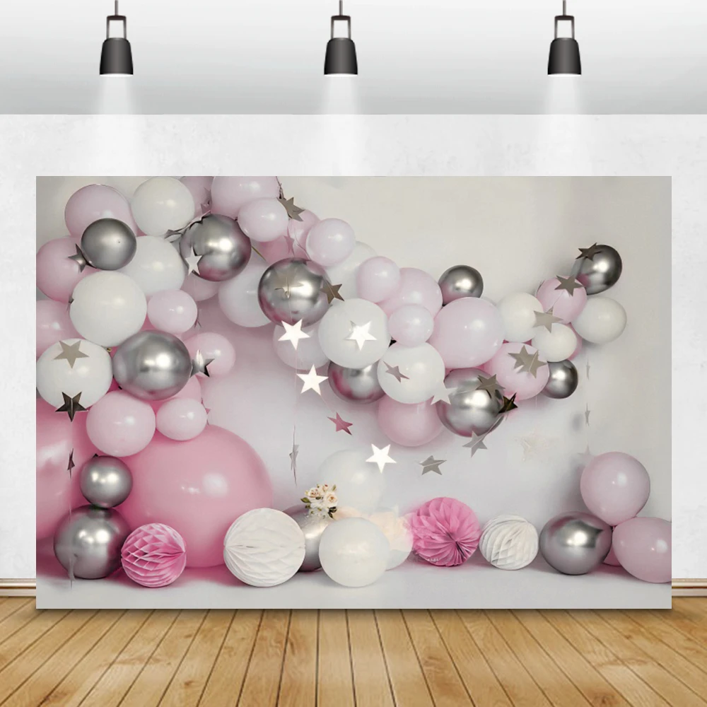 Laeacco день рождения фоны розовые шары цветы Звезды камин ребенок портрет фотография задние фоны новорожденный дети фотосессия