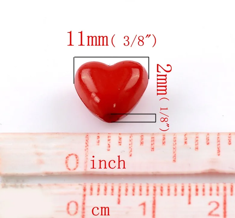 DoreenBeads Милые Акриловые непрозрачные бусины в форме сердца красные отполированные бусины россыпью для самостоятельного изготовления серег, ювелирных изделий около 11 мм x 10 мм, 200 штук