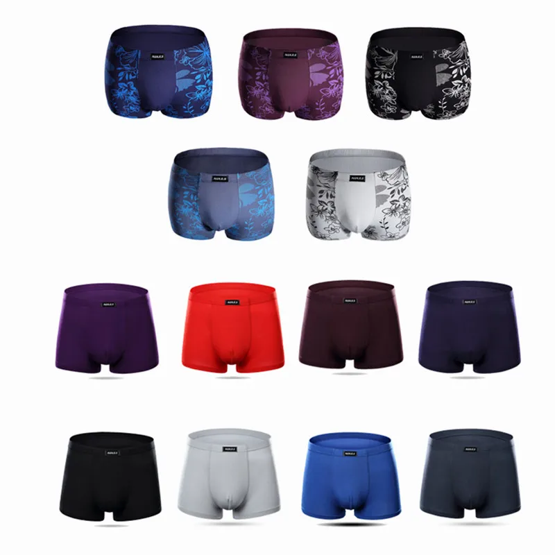 Трусы-боксеры мужские из бамбука, классическое дышащее пикантное мягкое нижнее белье, однотонныеЦветочные, удобные шорты, лето