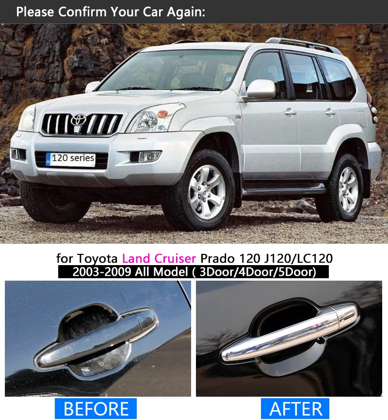 Продукт:FUNDUOO для Toyota Land Cruiser Prado 120 J120 LC120 2003-2009 хромированная дверная ручка накладка наклейка накладки