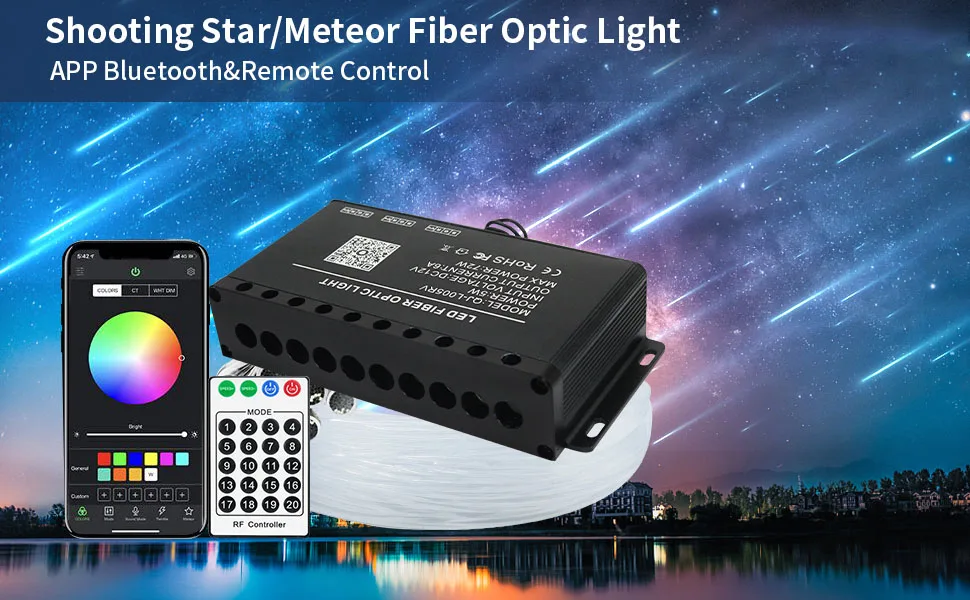 Светильник с эффектом метеоритов, драйвер 5 Вт, двигатель со звездами, Радиочастотный пульт дистанционного управления, ПММА волоконно-оптический кабель, светодиодный светильник для звездного неба
