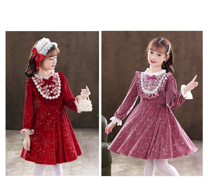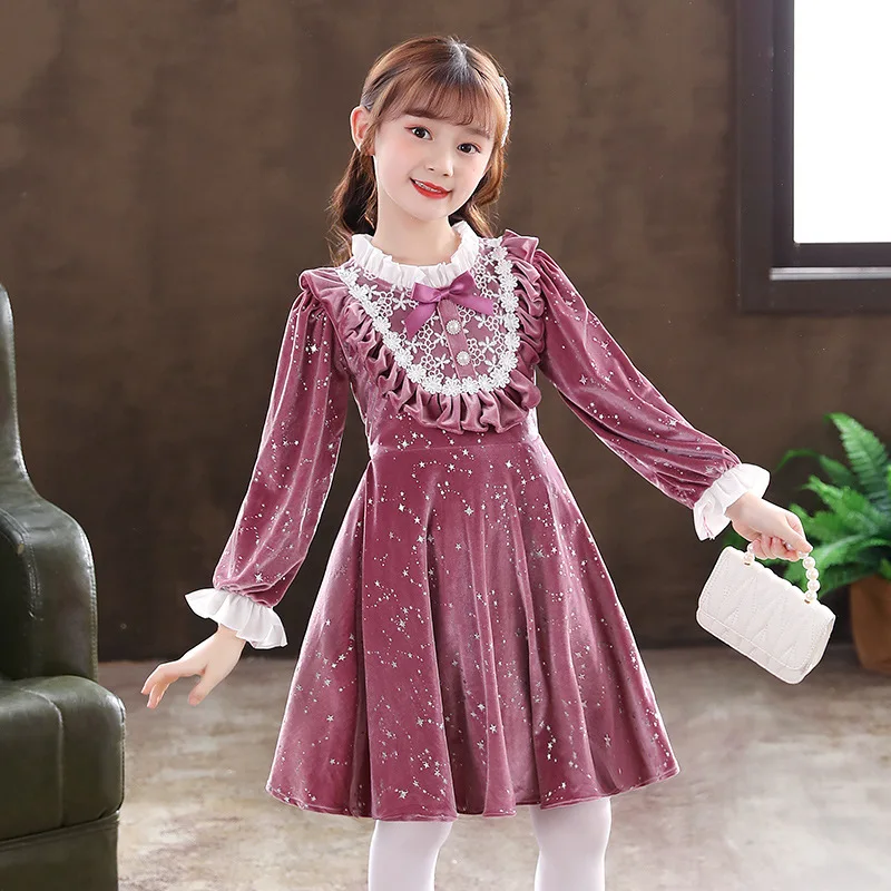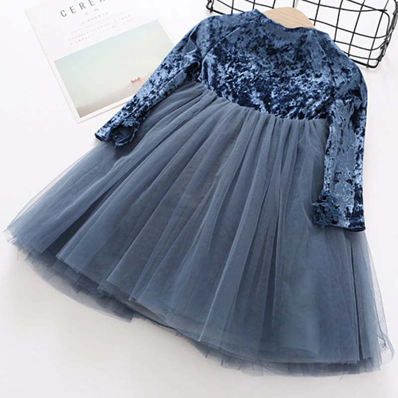 Детские зимние платья с длинным рукавом на Возраст 4-14 лет, бархатное элегантное вечернее платье для девочек-подростков, одежда для весны и школы, 2019
