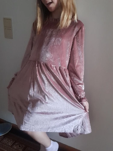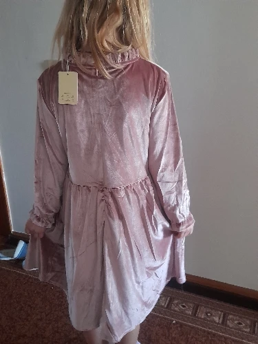 Платье шикарное, ткань плотная с тонкой флисовой подкладкой, сшито аккуратно, выглядит лучше чем на картинке, на рост 135 - 140 и вес 33 - 40 кг как раз, супер, лучшая покупка.