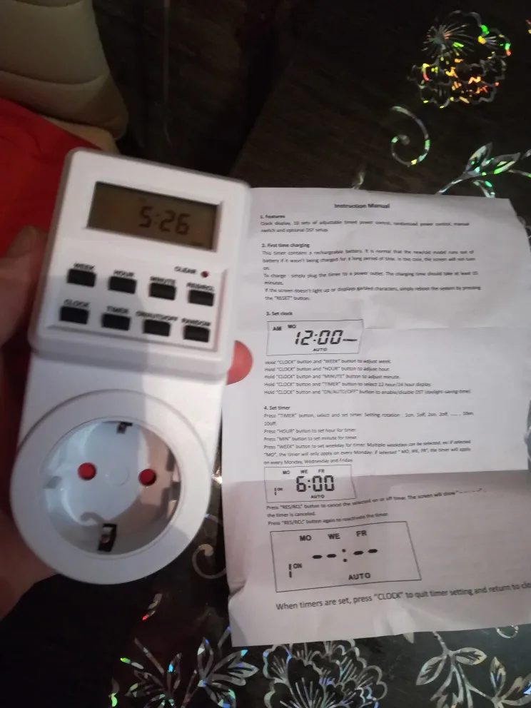 Гаджет получил. Доставка порядка трёх недель. Изготовлен качественно, если сравнивать с терморегулятором для тёплых полов, то у этого девайса алгоритм настройки прост как палка, единственный минус - настройка часов. Пришлось поставить будильник на 23:59 и с боем курантов сбросить заводские настройки “CLEAR”. Отсчёт времени начался с 0:00. Также есть функция “RANDOM” - покидающие загородный дом на пару дней могут подключить через него какой-нибудь светильник и он будет переодически включаться на пол часа. Короче, штука хорошая.