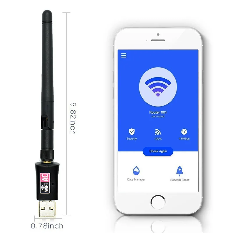 Двухдиапазонный USB-адаптер беспроводной локальной сети с антенной дальнего действия 5 дБи с высоким коэффициентом усиления предоставляет вам крошечный способ быстрого подключения Wi-Fi следующего поколения.