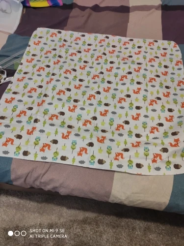 очень довольна пеленочками, яркие, мягкие, размер средний, можно застелить в коляску или подстелить куда то. во время стирки не линяют, цвет остался прежним.