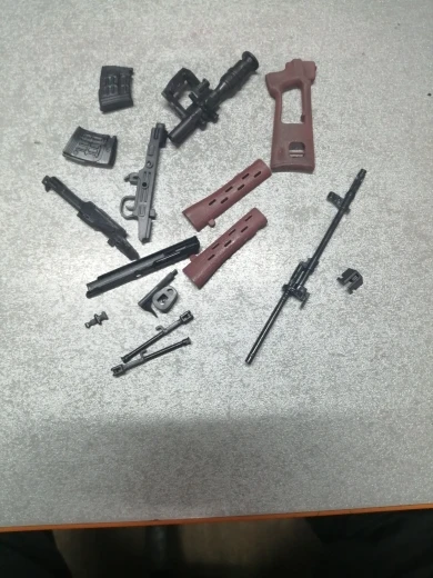 Пластик более менее нормальный. Подгонка деталей нормальная. Облоя нет. Из недостатков - плохая фиксация ствола. Магазин плохо фиксируется и постоянно пытается выпасть.