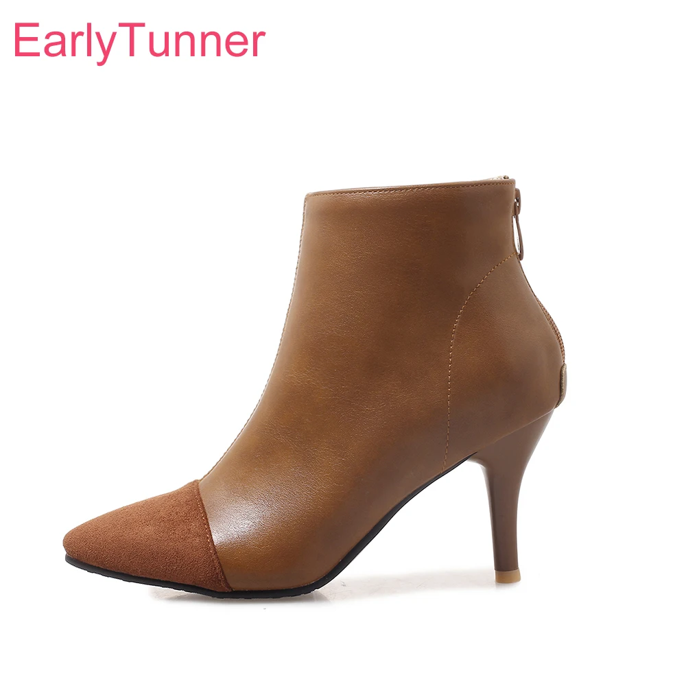 Фирменная Новинка; Сезон Зима; Цвета: черный, зеленый, светло-бежевые женские ботильоны Свадебная обувь туфли на высоком тонком каблуке, ES93 большие и маленькие Размеры 10 32 43 46