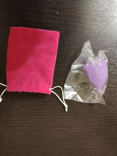 Пришла за 37 дней в сборной посылке. Соответствует указанному изображению , но цвет мешочка малиновый, на самом деле. За него, как раз, огромный плюс. Довольно приятен на ощупь. Описать чашу подробнее я смогу только после месячных. На вид никаких претензий нет, так как все сделано аккуратно.