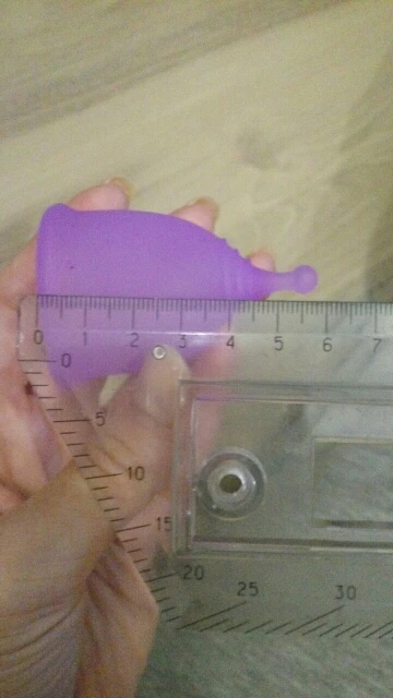 Чаша легко расправляется внутри, имеет удобный хвостик. Пробовала использовать на ночь при умеренных выделениях, на утро достала чуть меньше чем на половину заполненную чашу. Поначалу чувствовался небольшой дискомфорт, а потом нормально, будто бы и нет её. При введении пользовалась лубрикантом во избежание микротравм. Потом может без него привыкну.