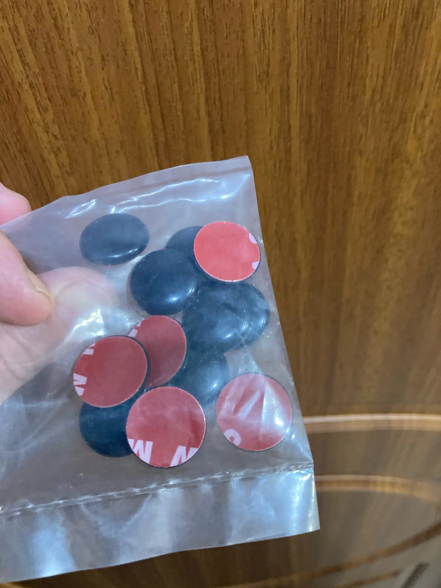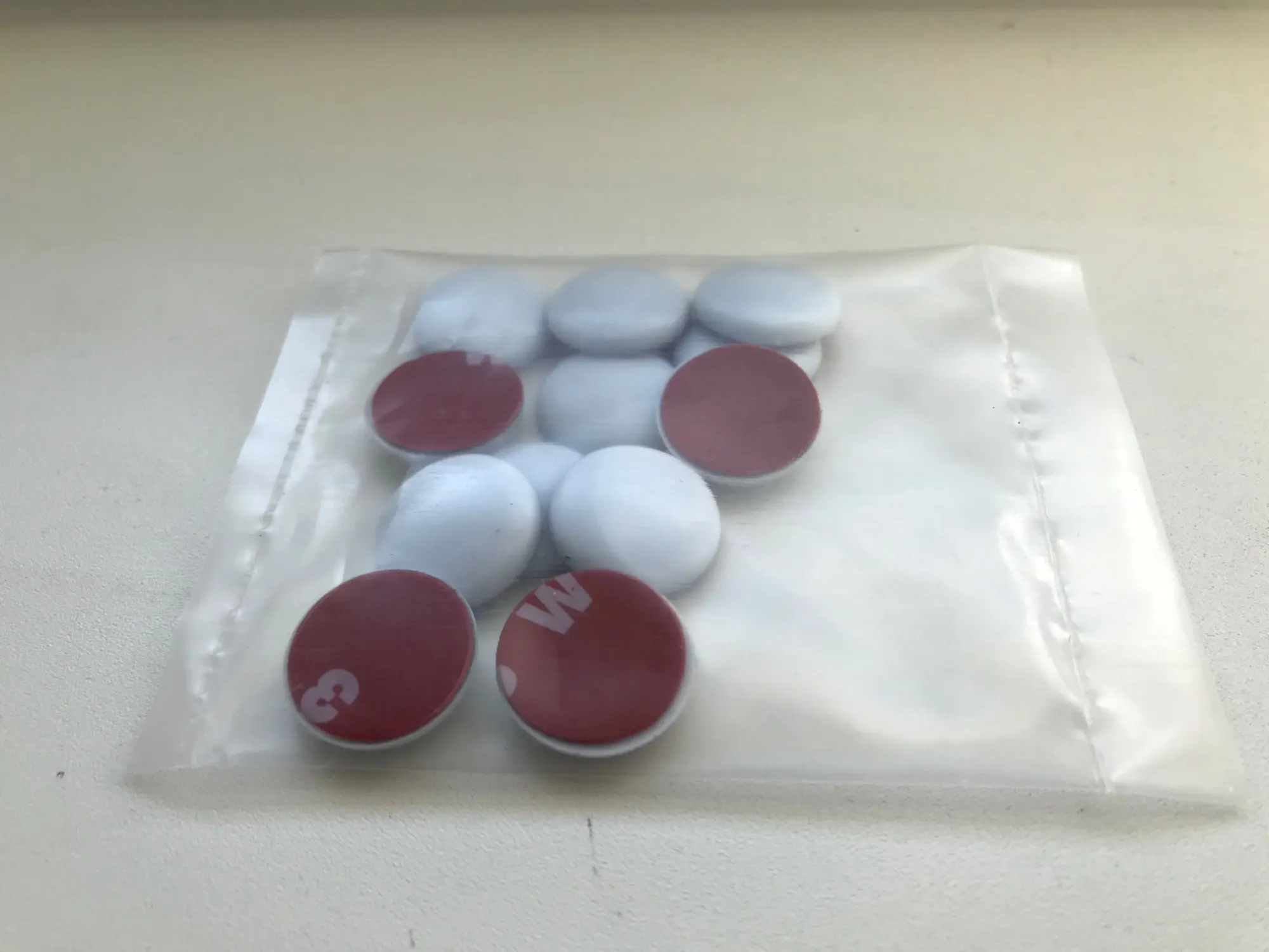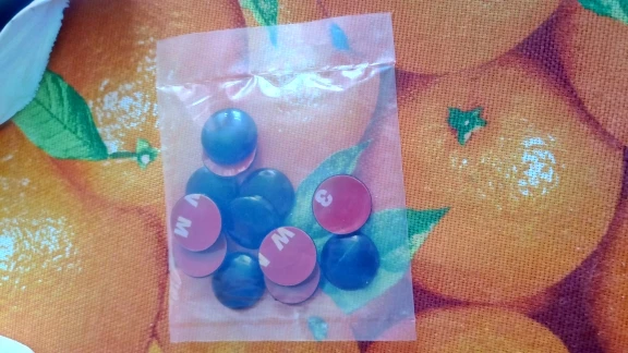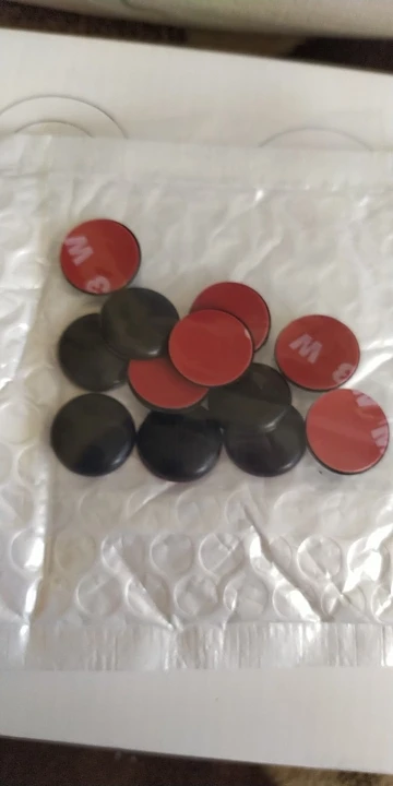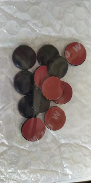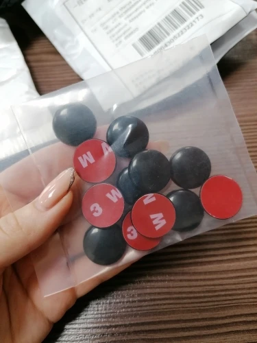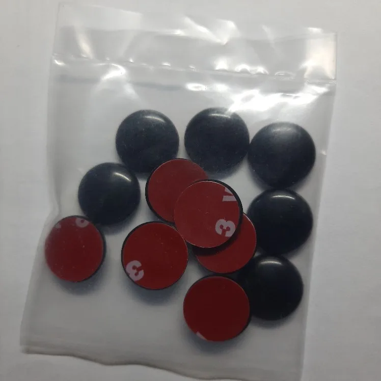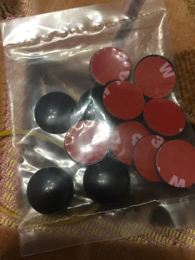 Всё соответствует описанию. На авто ещё не лепил. Диаметр 19 мм. Скотч двухсторонний сплошной. Прекрасно изолирует винты крепления на дверях авто от попадания влаги и предотвратит коррозию. Цвет белый брали под авто.