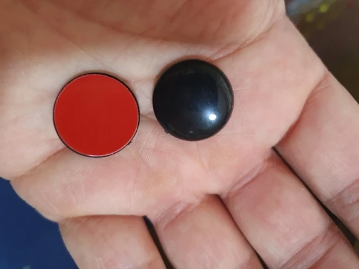 Чуть выпуклые заглушки на винты. Подошли хорошо. Внешний вид улучшают, но их необходимость в машине очень спорна..) Эстетам советую!)
