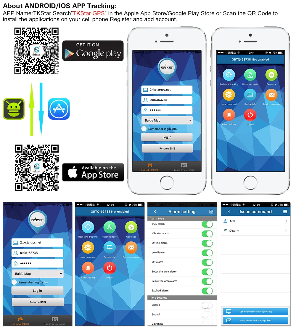 5. Сигнал тревоги: после того, как вы сделали настройку трекера, пожалуйста, держите трекер неподвижным в течение 5 минут, затем эта функция начнет работать. Он отправит СМС "сигнализация датчика!" на номер админа, когда аппарат будет в шоке.