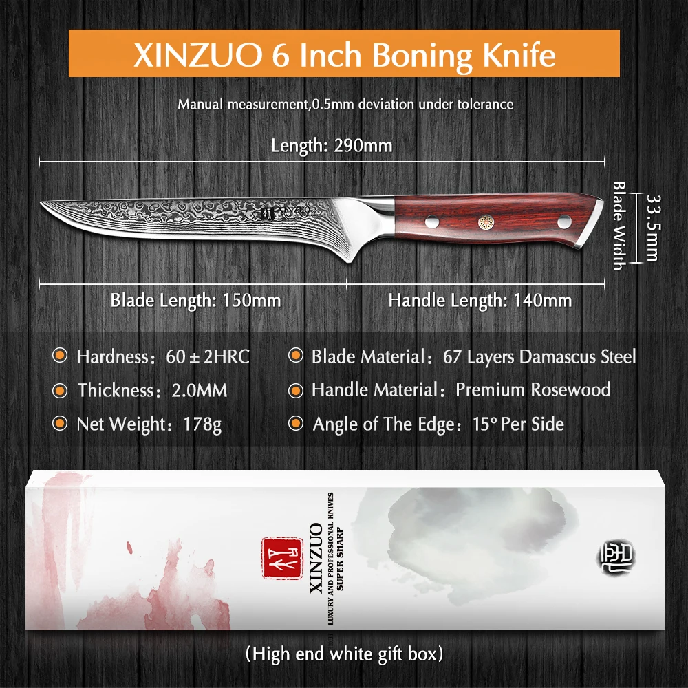 Серия XINZUO Yu, нож для обвалки из дамасской стали