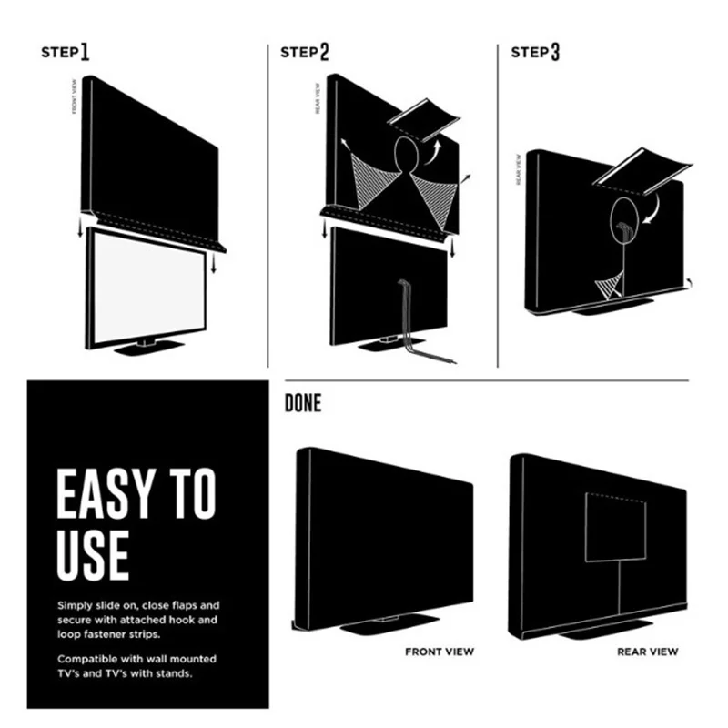 Наружный черный ЖК-светодиодный чехол для телевизора водонепроницаемый чехол для телевизора Пыленепроницаемая ткань из микрофибры светодиодный всепогодный Универсальный защитный экран