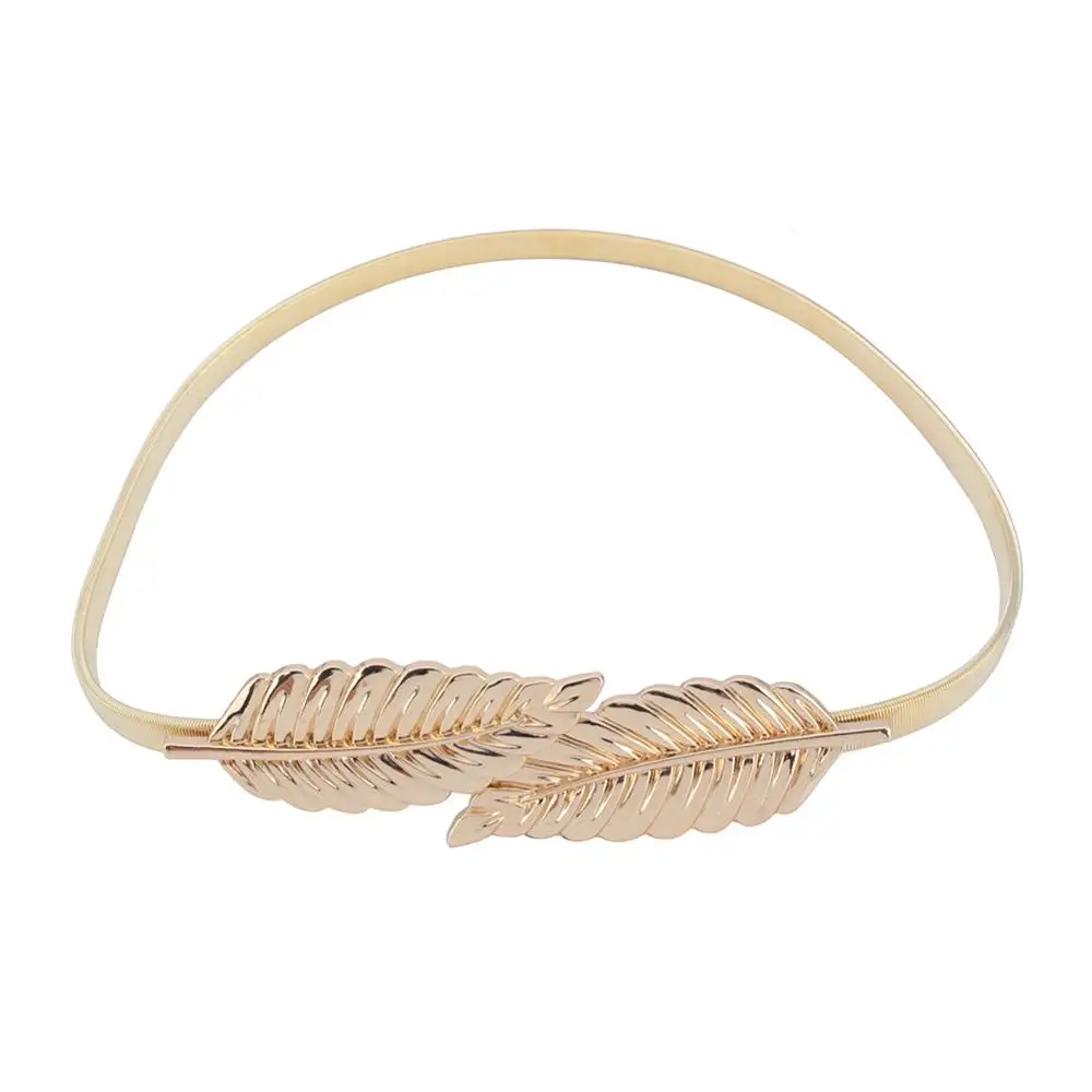 style 1New Fashionable Women Metal Leaves Elastic Waist Dress Belt Strap