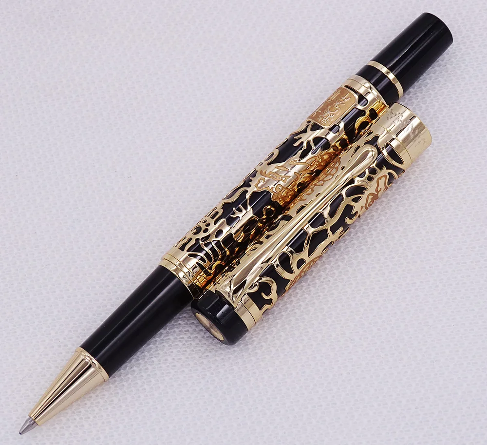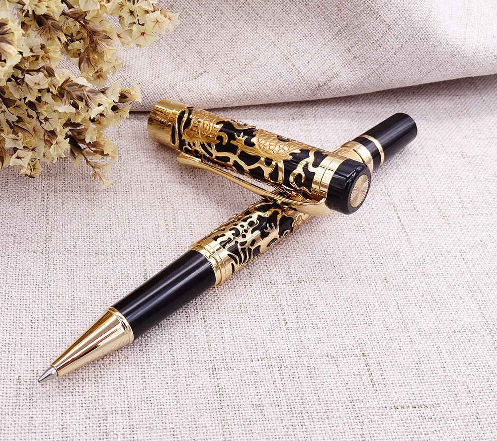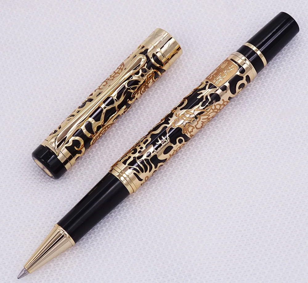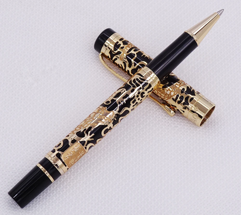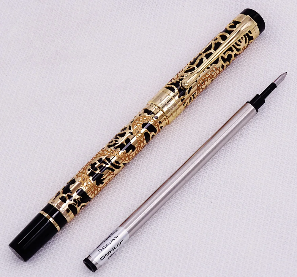 [Уникальное создание, тонкое мастерство]-- Изготовлен из цельнометаллического материала, превосходная технологияВоспроизводит выдающуюся великолепную традиционную культуру китайской нации.Jinhao умно сочетает в себе Роскошные, щедрые и винтажные особенности этой ручки-роллера.