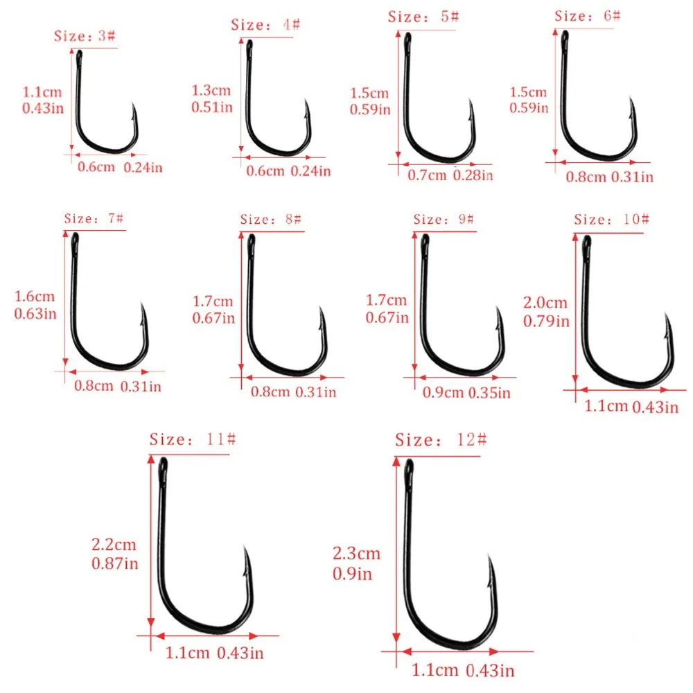 Рыболовные Крючки #3-#12, 500 шт.компл., для ловли карпа, серебристые, черные, золотистые, для речной рыбалки, набор снасти для ловли окуня из нержавеющей стали для ловли карпа