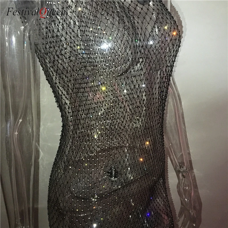 Женское Сетчатое пляжное платье Fantoye, с бриллиантами, без рукаво...